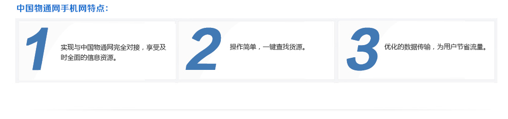 中国物通网将全力打造中国最大最专业、最实用的物流行业手机网站,集合网站五大会员服务,全面与中国物通网信息对接,让用户通过手机享受到无限的信息资源,使用户获得更大的发展与更多的收益。